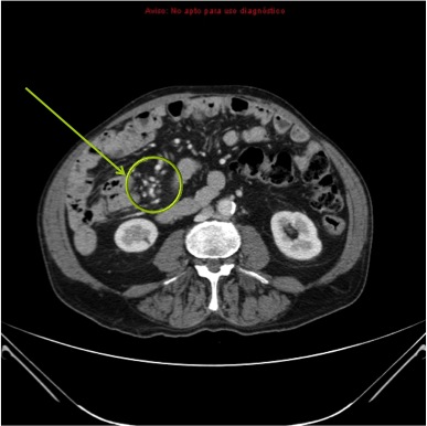 Se solicita tránsito intestinal baritado por proceso actual de vómitos, estreñimiento, historia de sangrado digestivo bajo y anemia sin hallazgos de malignidad tras la realización de colonoscopia y TAC.