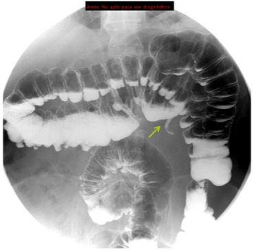 Se revisarón estudio previos, en un enema baritado y TC se observó:
