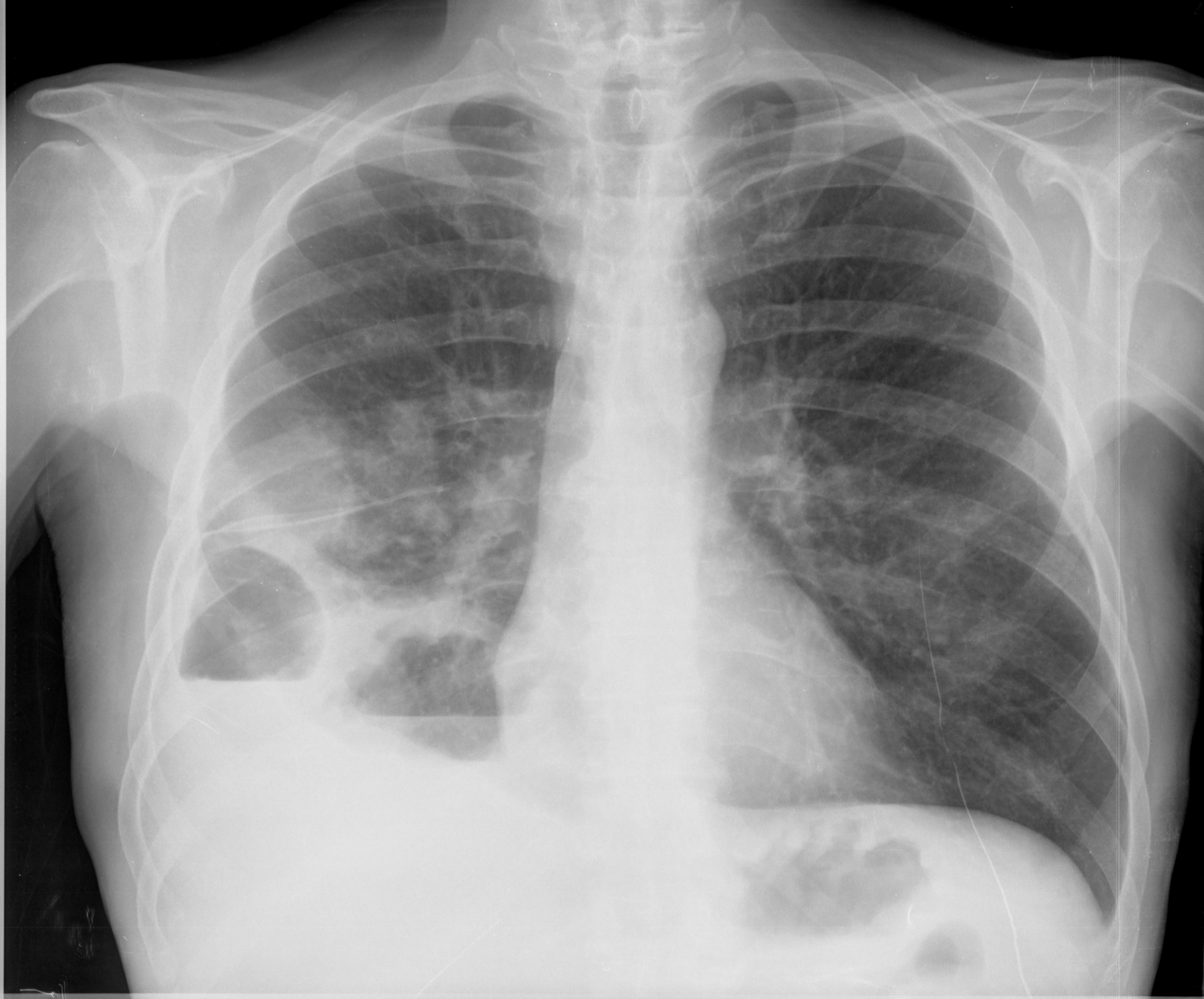 La discordancia del nivel aire líquido, tanto en longitud como en densidad, entre las dos proyecciones PA y lateral y la ausencia de pared superior del nivel hidoréreo, al menos en una de las dos proyecciones, son signos que nos permiten hablar de localización pleural. Las dos causas más frecuentes de encapsulado pleural con nivel hidroaéreo son la instumentación, es decir, la introducción de aire tras la aspiración de líquido pleural; en segundo lugar, la fístula broncopleural que puede ser debida a infección o traumatismo. Ambas causas producen una comunicación entre la vía respiratoria periférica y el espacio pleura debido a necrosis o penetración del parénquima.