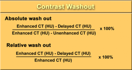 Es interesante señalar que los adenomas con poco contenido en lípidos (tienen más de 10 UH) se comportan y lavan de la misma manera que los que sí tienen alto contenido y que además, la aplicación de la fórmula Washout es independiente a la cantidad de contraste inyectado.