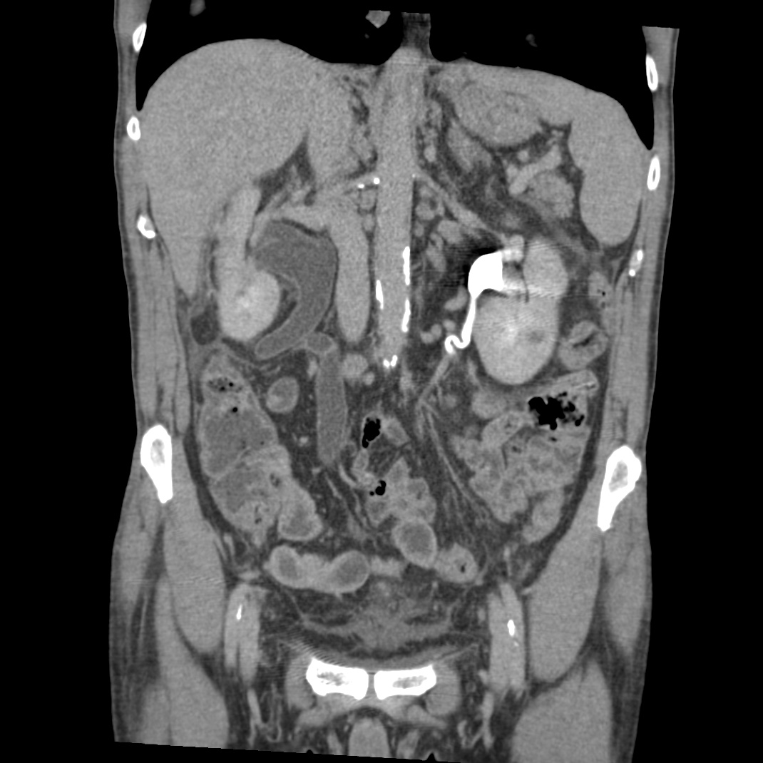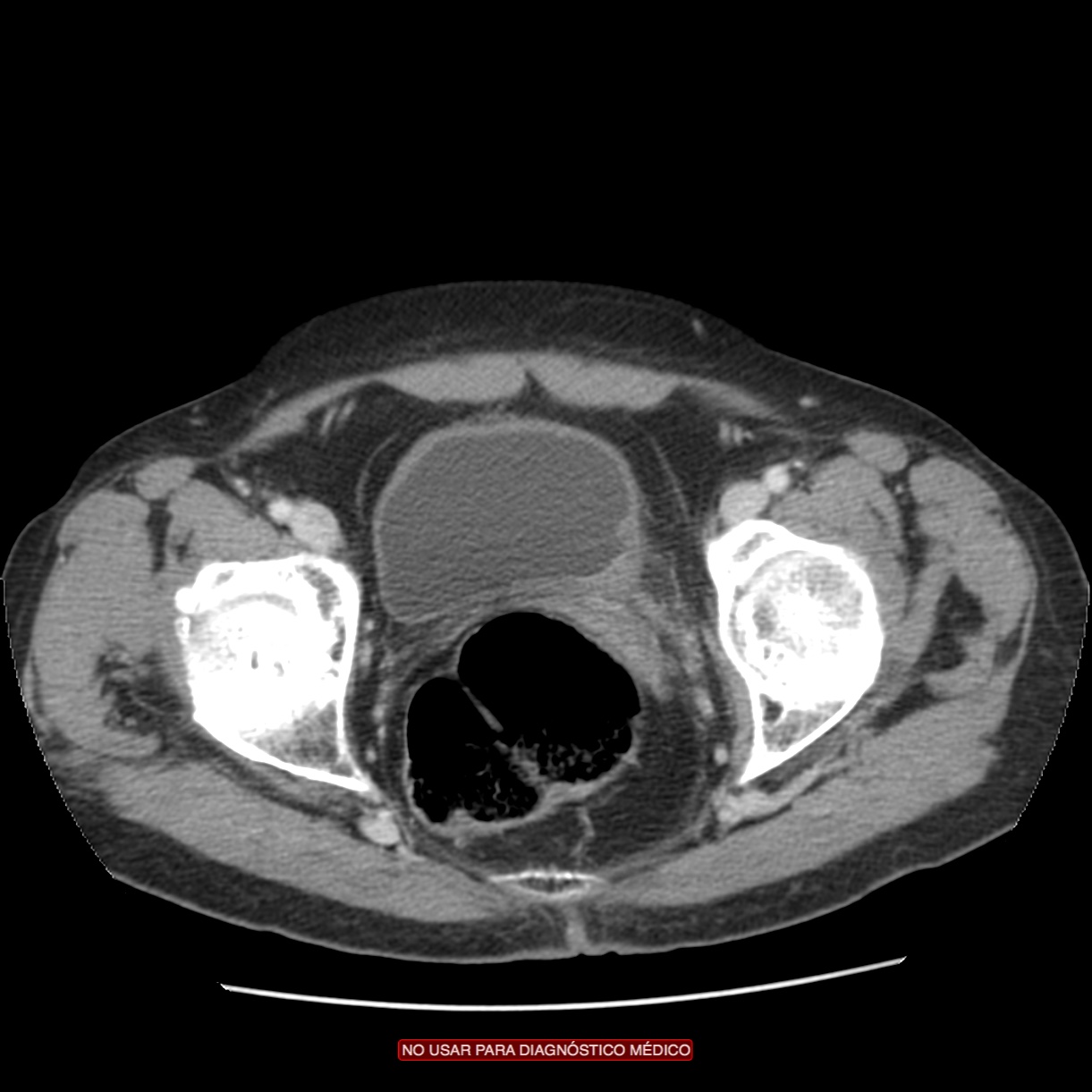 - Ha desarrollado un tumor metacrónico en pelvis renal derecha, también responsable de la hidroureteronefrosis.