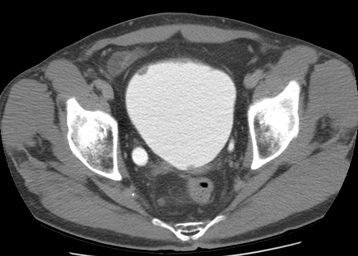 - Realce temprano por TC con contraste y cortes finos: algunos autores defienden que también habría que examinar la vejiga mediante la obtención de imágenes en una fase previa (60 -80 seg.) tras la inyección de contraste ya que el cáncer de vejiga muestra un realce precoz que es mayor que el de la pared vesical normal. Además de la fase excretora, esta fase precoz es una herrmienta útil que podemos usar, si bien no de manera sistemática, por lo menos ante determinados casos según cuando el riesgo clínico es elevado o tenemos hallazgos en otras pruebas, como una ecografía, los cuales podríamos analizar de una manera más dirigida.
