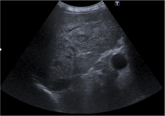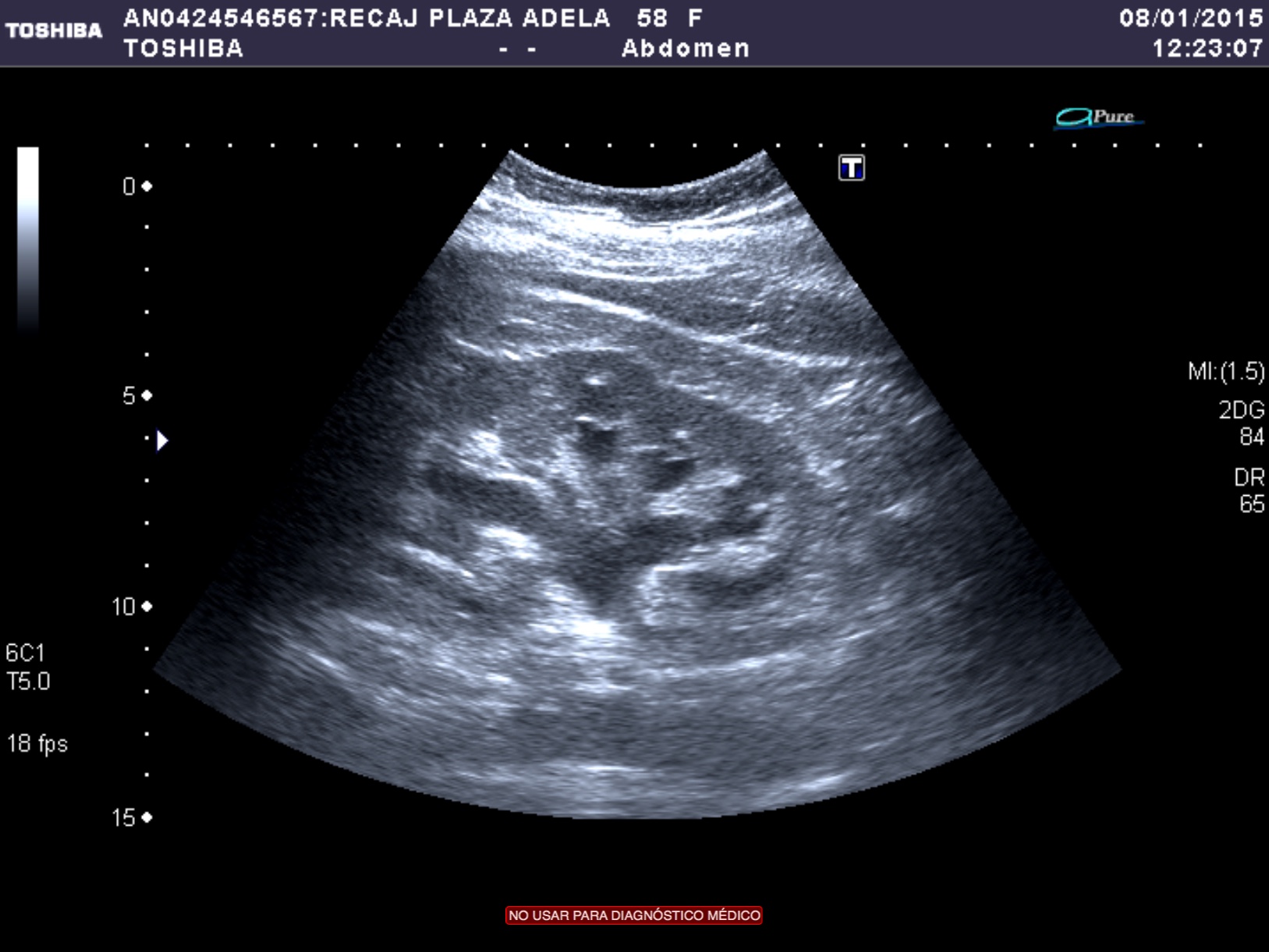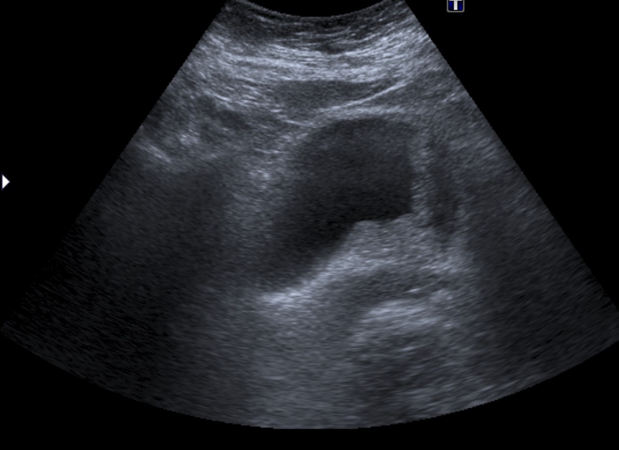 Tras el tratamiento de la recidiva y nefrostomía para la hidroureteronefrosis, vuelve acudir al hospital a los 9 meses por episodio de dolor en FD y malestar general. Se realiza una ecografía de urgencias.