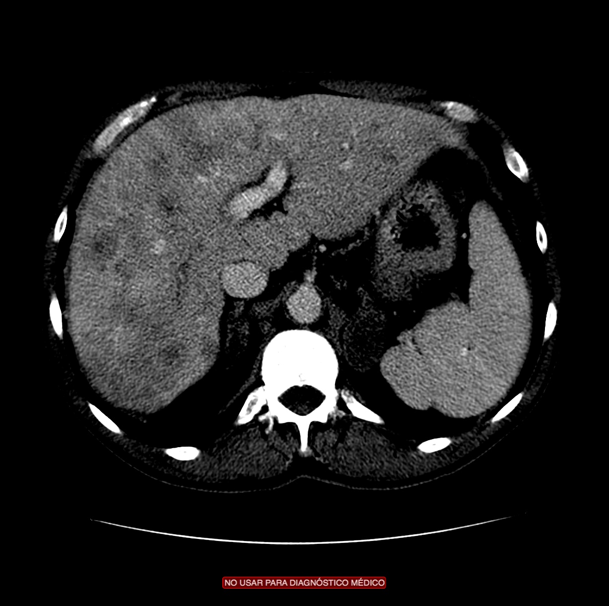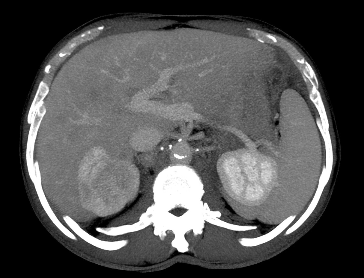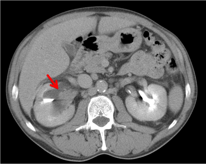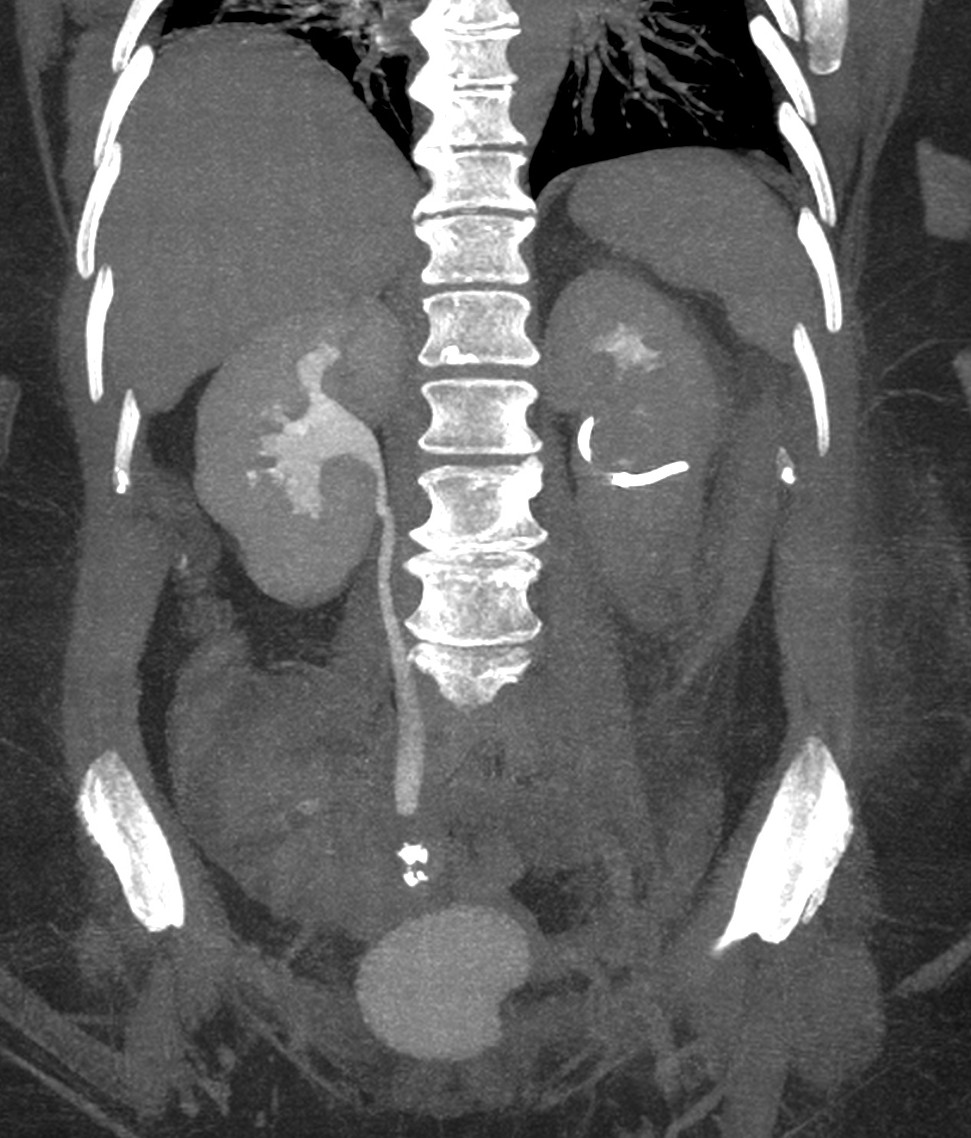 Se le realiza una Uro-Tc por seguimiento al año, aunque en esta ocasión el paciente refiere episodio de hematuria.