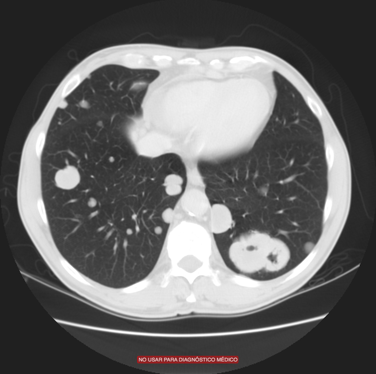 - Mala evolución radiológica del proceso a expensas de metástasis pulmonares y hepáticas.