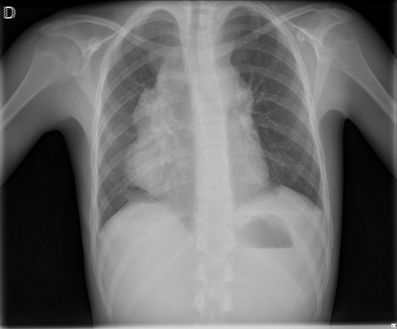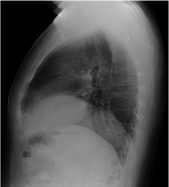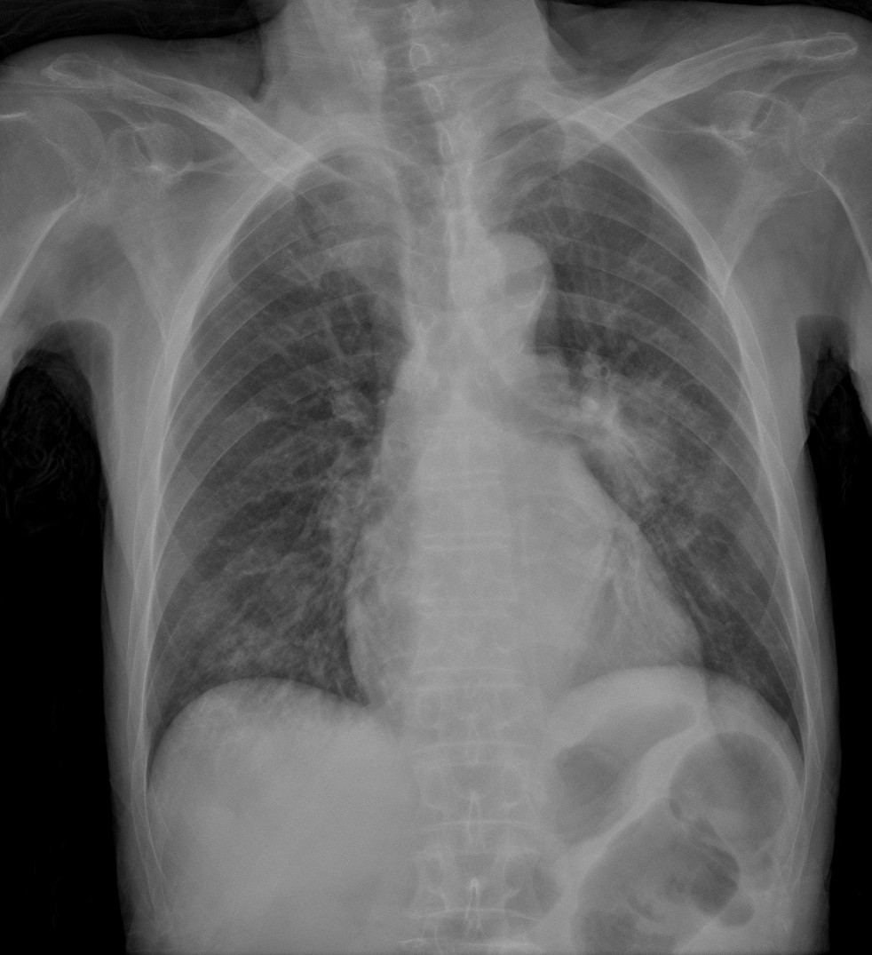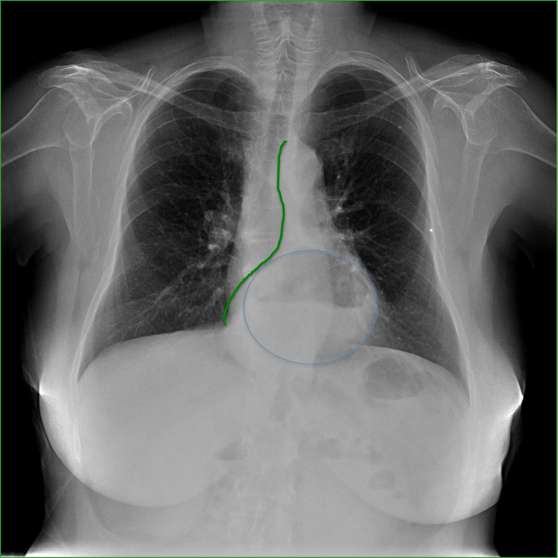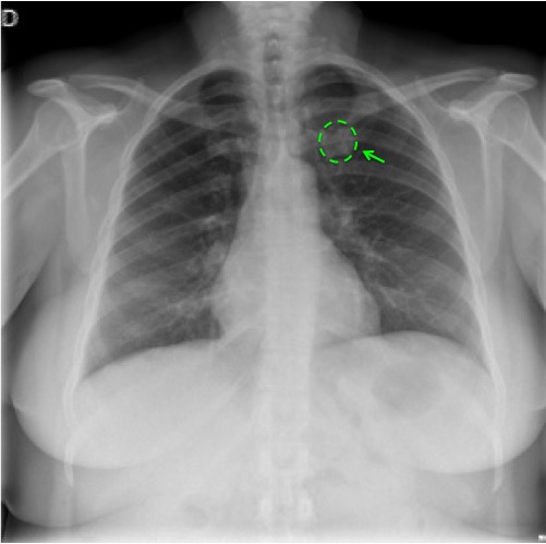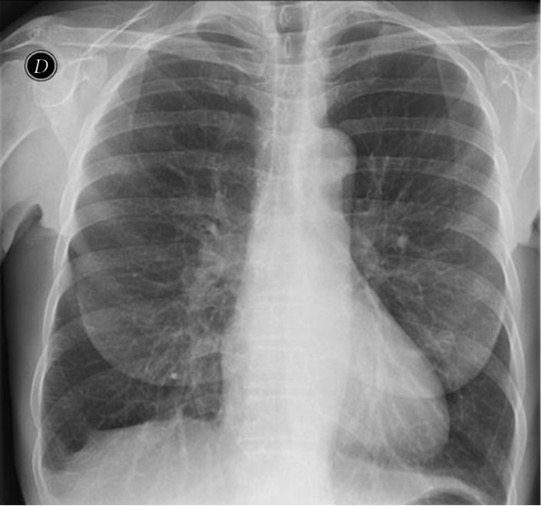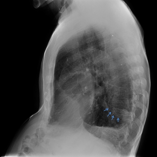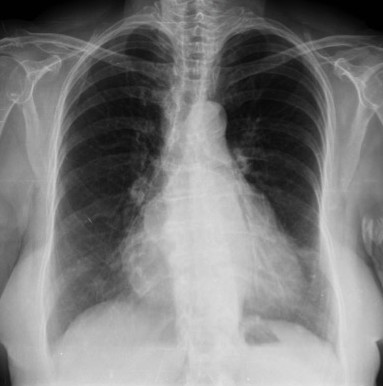 - En un principio podríamos decir que existe un aumento de densidad retrocardiaco que podría ser compatible con condensación neumónica a dicho nivel, sin embargo estamos ante una placa poco inspirada, lo cual puede llevarnos a cometer errores diagnósticos.