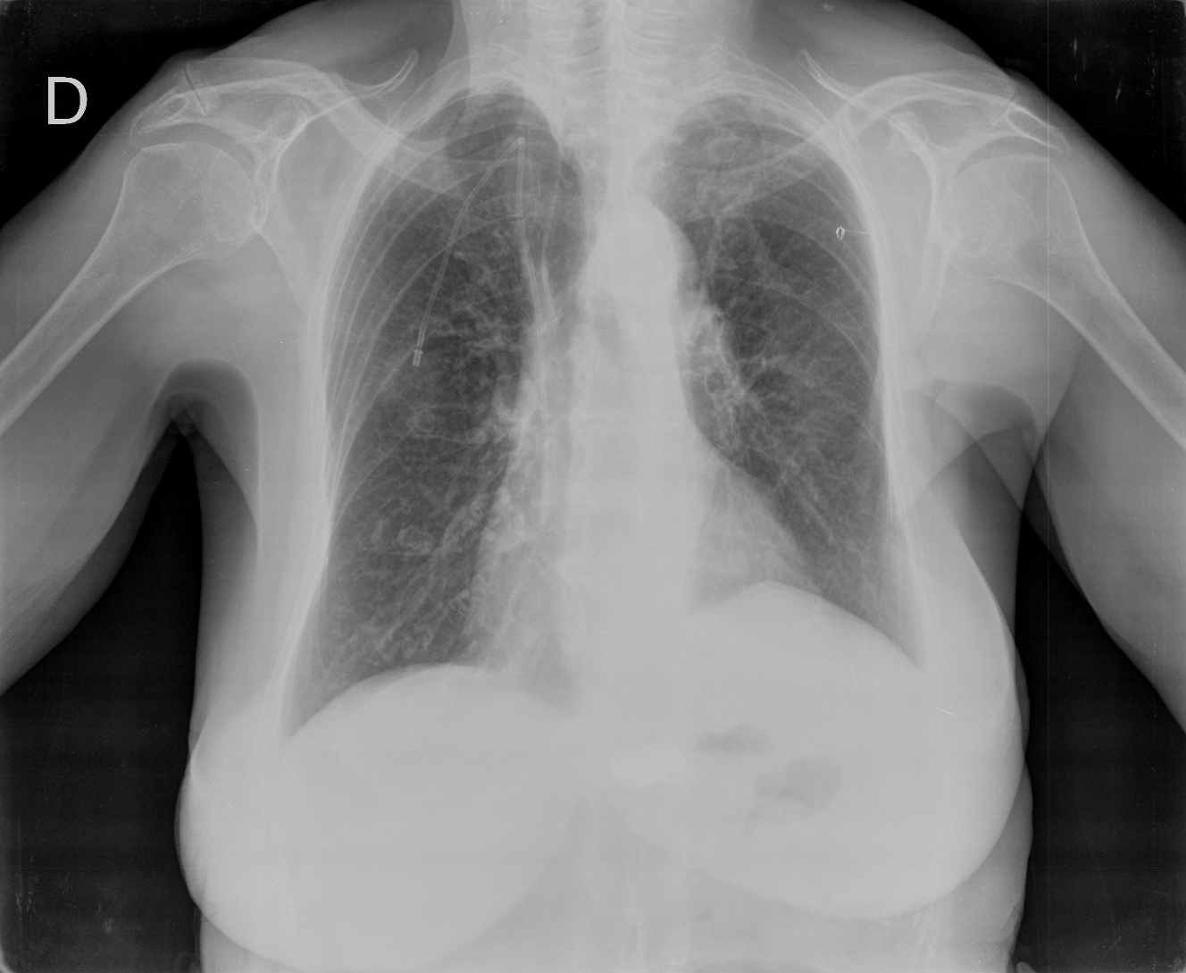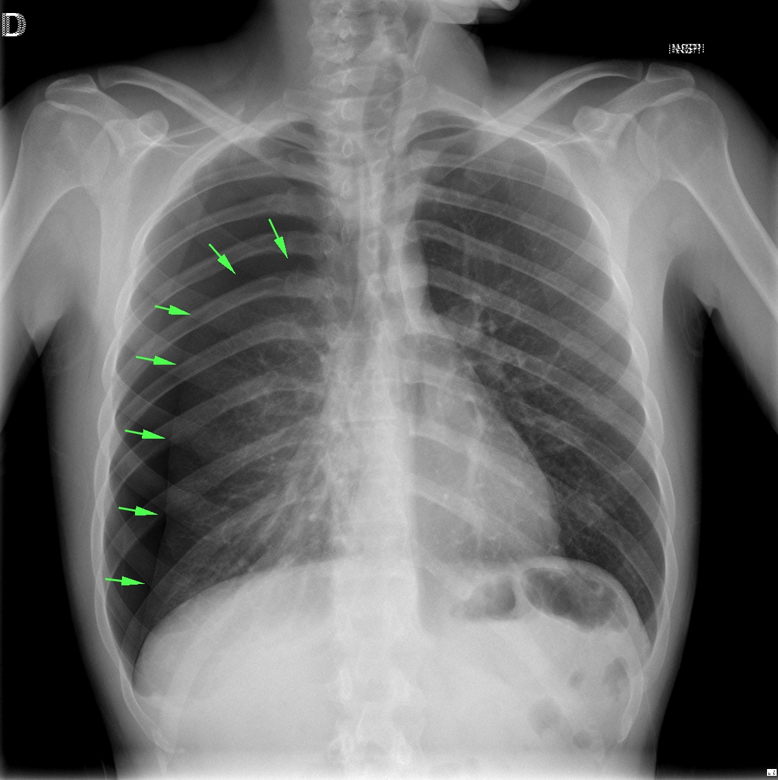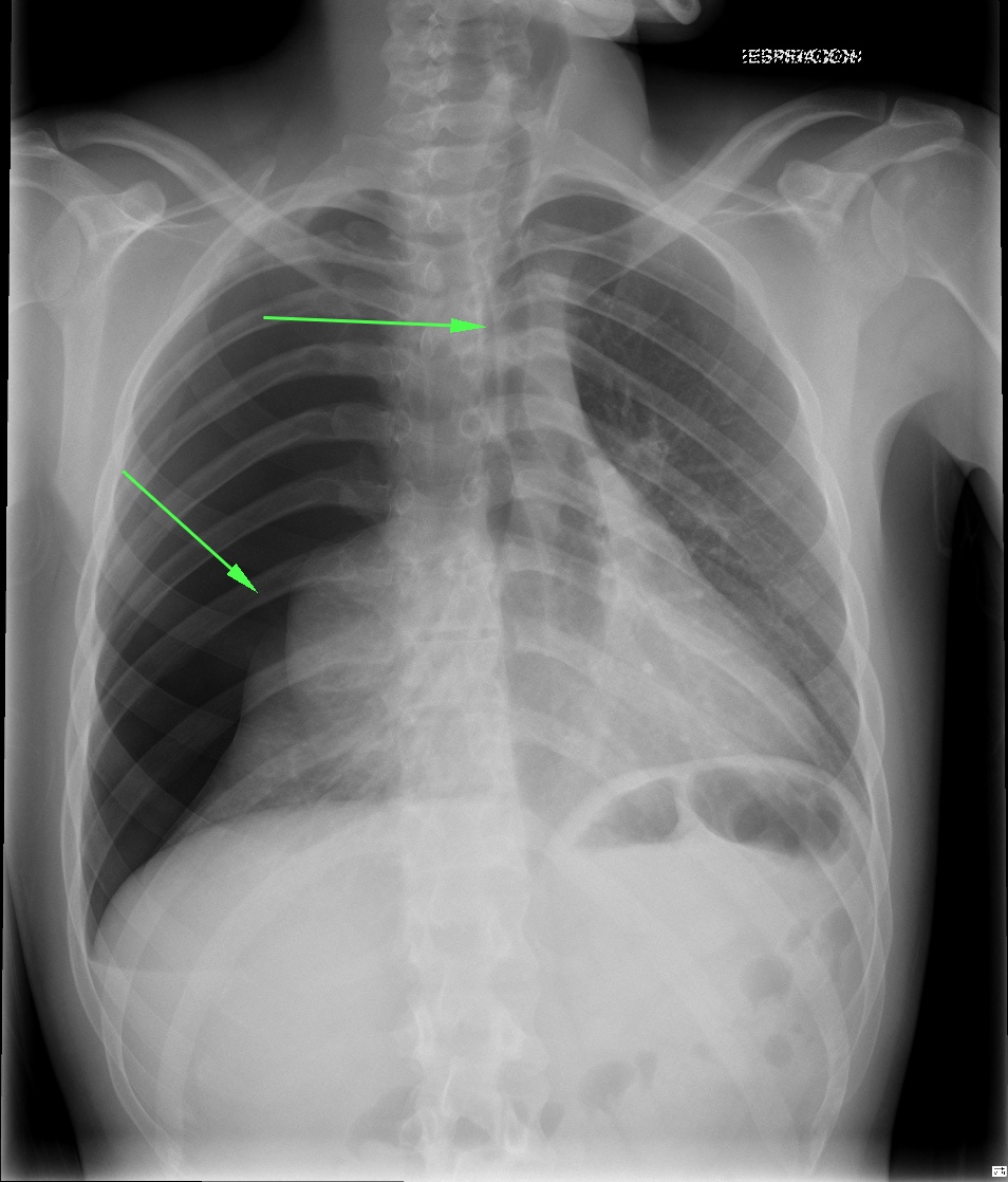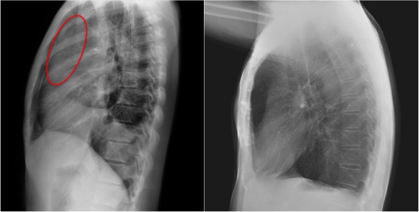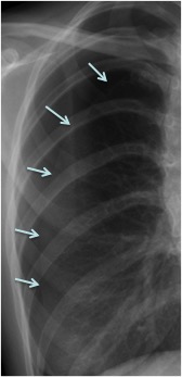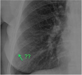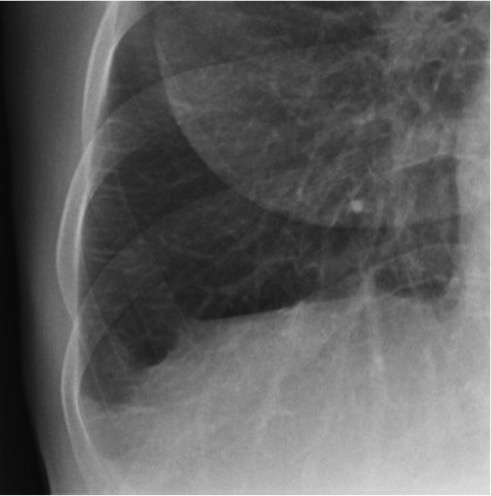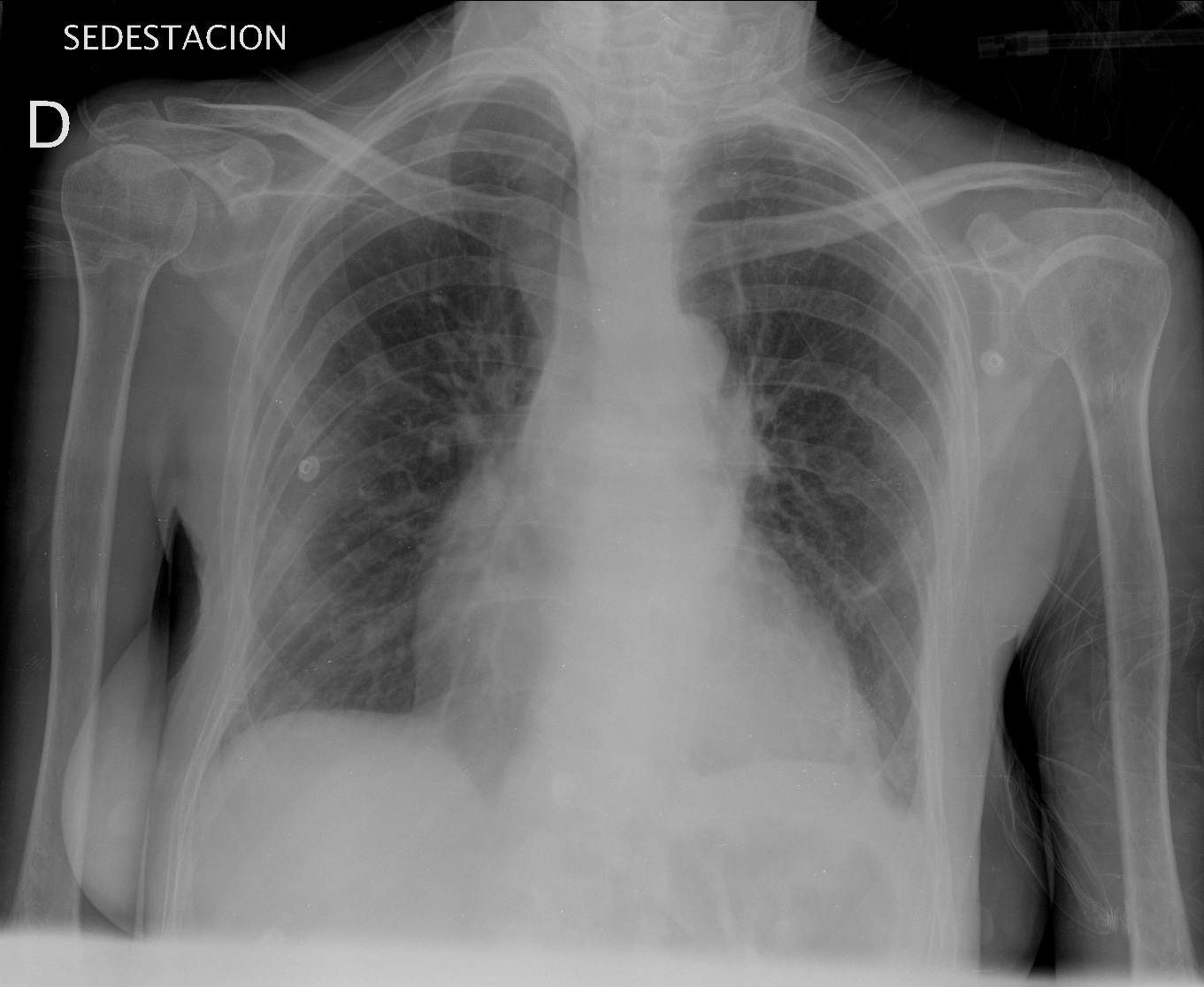 - Por la clínica presentada, debemos descartar un posible neumotórax. Sin embargo estamos ante una placa radiográfica con mala técnica.