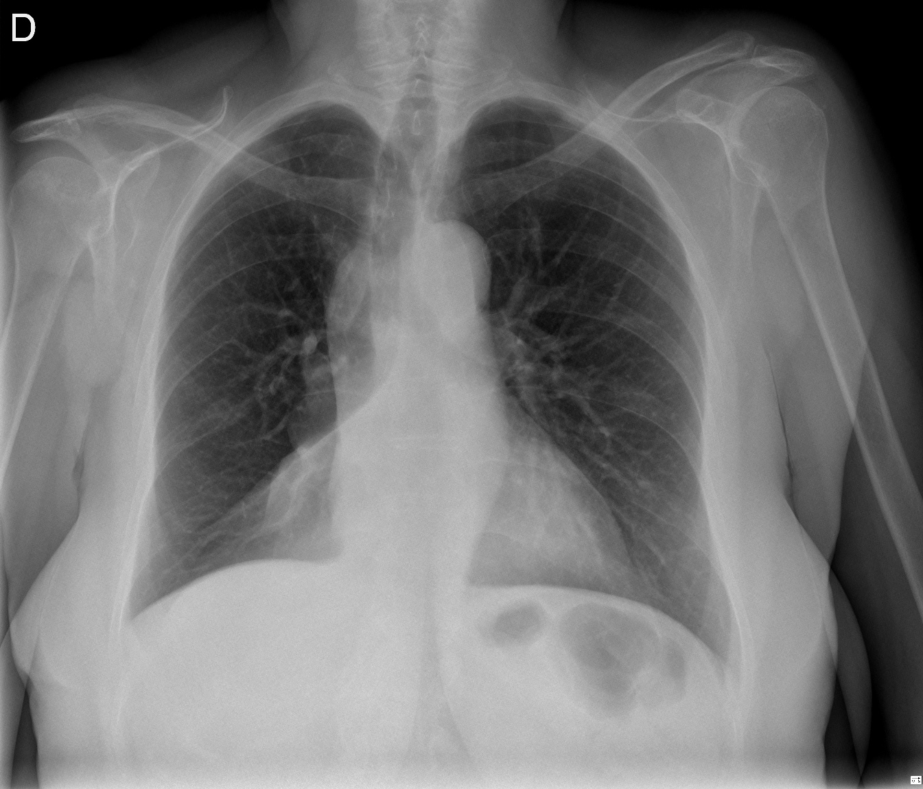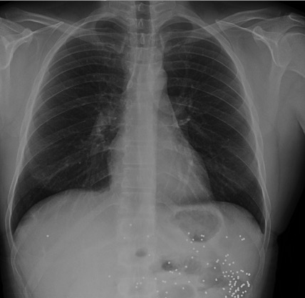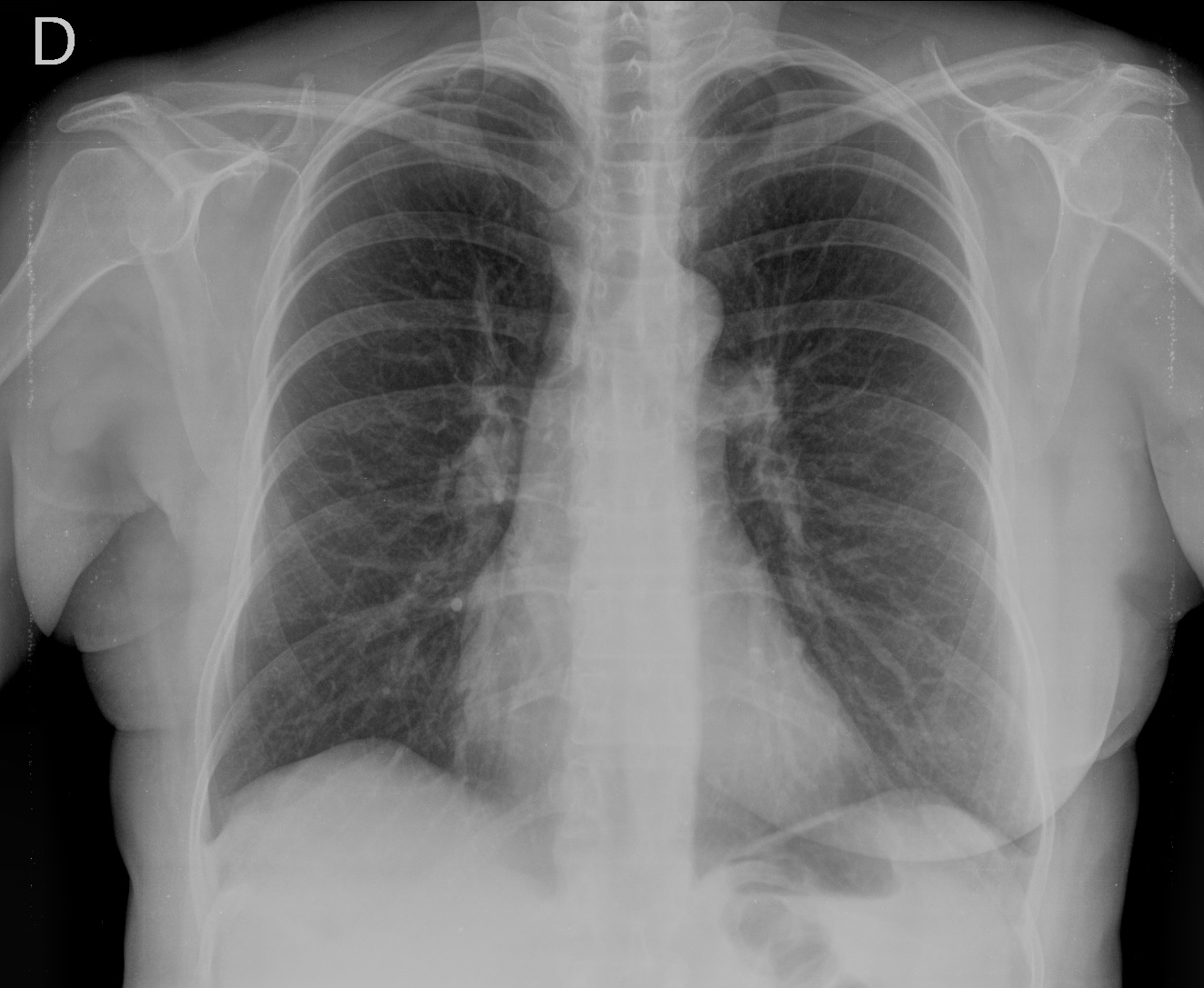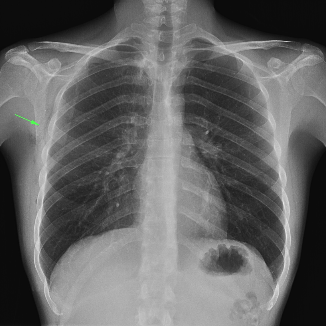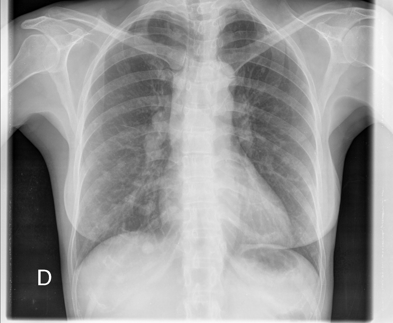 - Por la clínica presentada, debemos descartar un posible neumotórax. Sin embargo estamos ante una placa radiográfica con mala técnica.