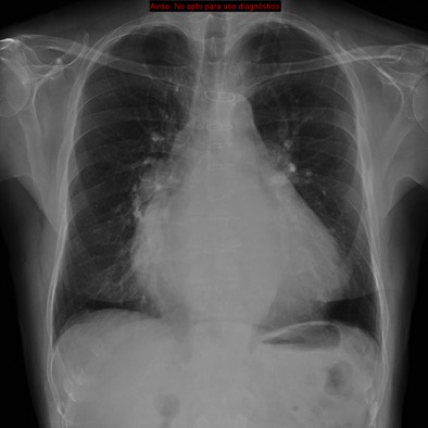 Solución: Es un estudio Normal. Silueta cardiomediastínica y parénquimas pulmonares sin alteraciones significativas.