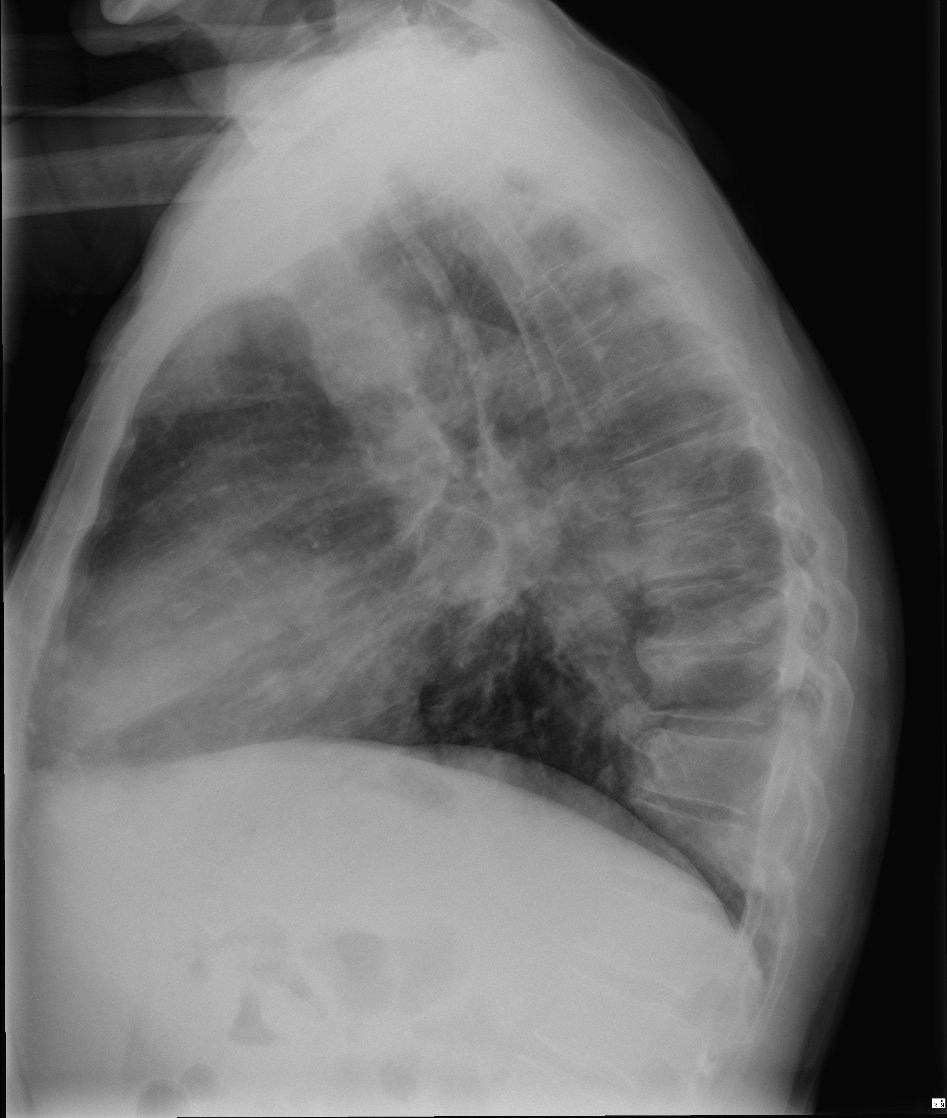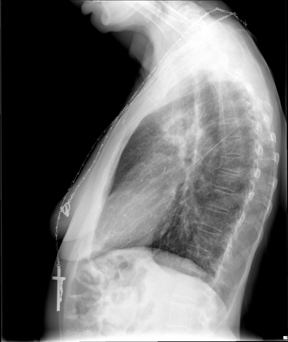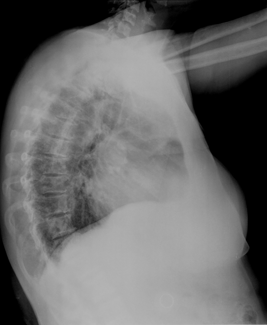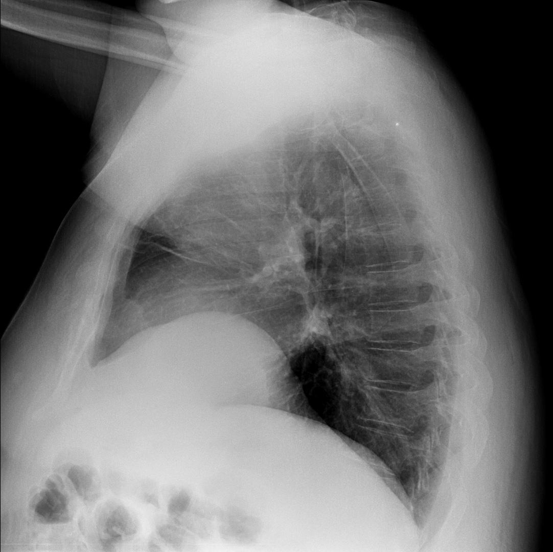 La imágen nodular, mejor visualizada en la placa lateral, ¿podría ser un proceso neoformativo? Pues podría, pero no lo es, estamos ante un caso de Atelectasia Redonda, se define así: