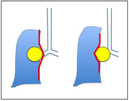 Recordad: el hilio derecho tiene un morfología cóncava o de libro abierto y ésta es más constante que la del hilio izquierdo, el cual posee una morfología más variable.