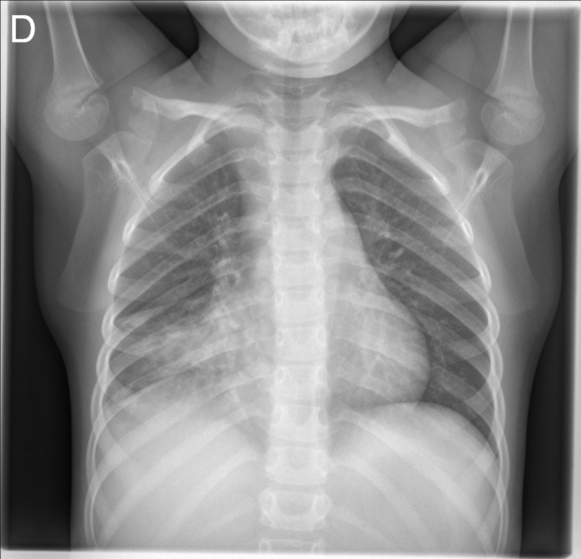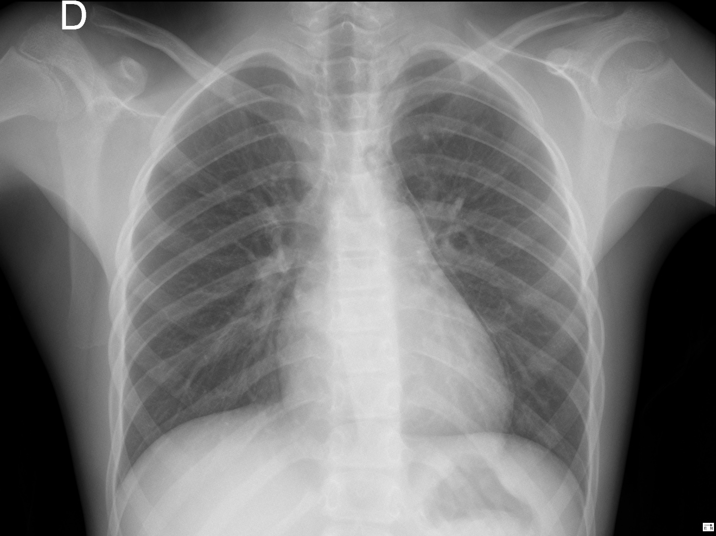 Ya no se observa el aumento de densidad retrocardiaco, la placa es normal.