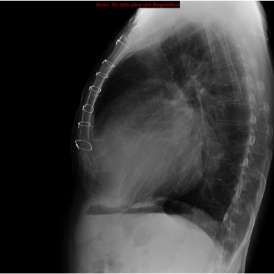 - Tras examinar la placa lateral se observa un aumento de densidad en la columna que puede ser compatible con una condensación, es el signo de la desnificación vertebral.