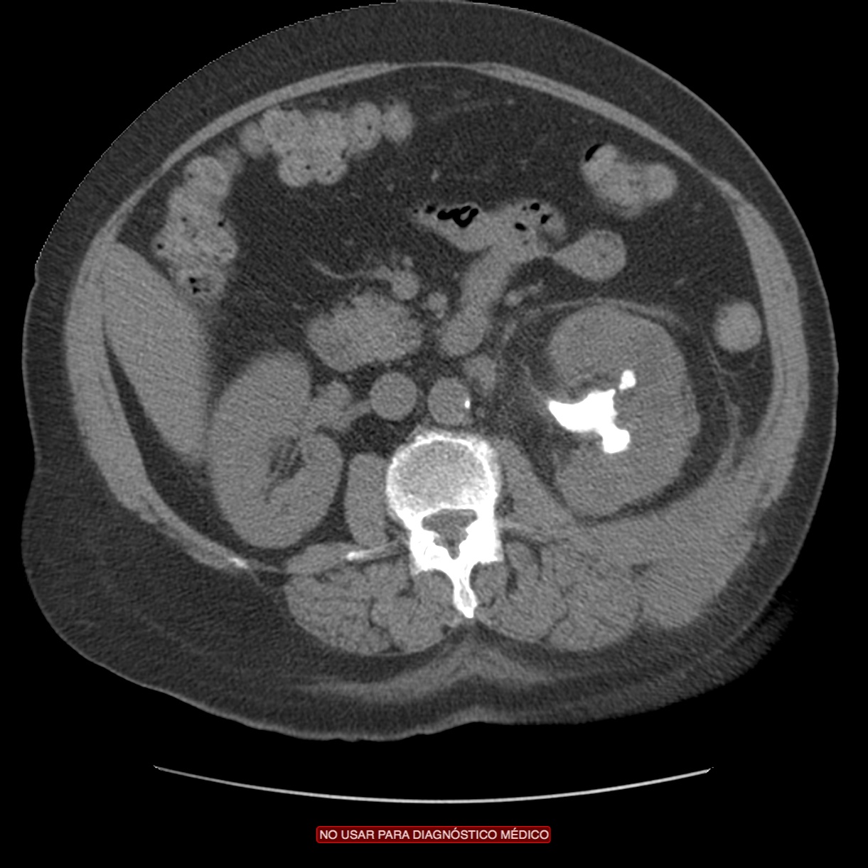 - Litiasis de tipo coraliforme, calcificaciones intraparenquimatosas.
