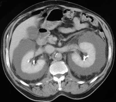Pequeñas cantidades de líquido perirrenal se presentan en cuadros de insuficiencia renal aguda o en casos de sobrecarga hídrica y edema generalizado.