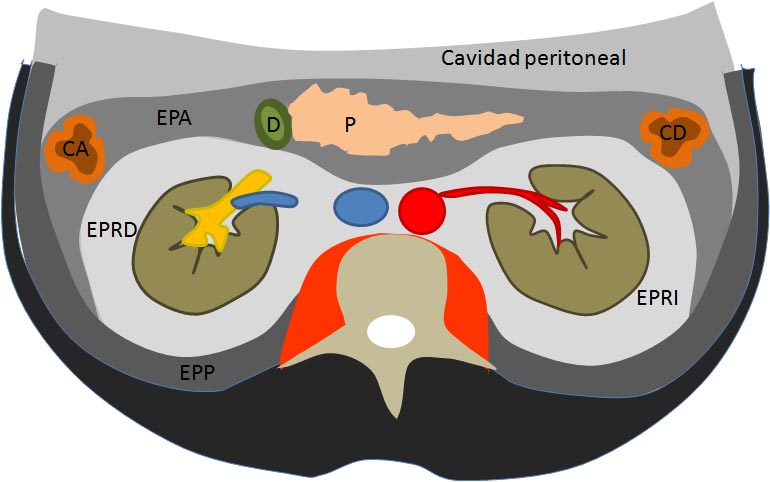 El espacio perirrenal (EPR) es un espacio par, situado a cada lado de la columna, en el retroperitoneo.
