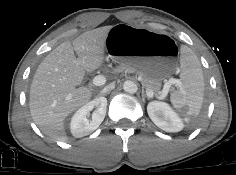 Varón jóven que acude a urgencias tras accidente de moto. Presenta dolor acusado en flanco izquierdo.