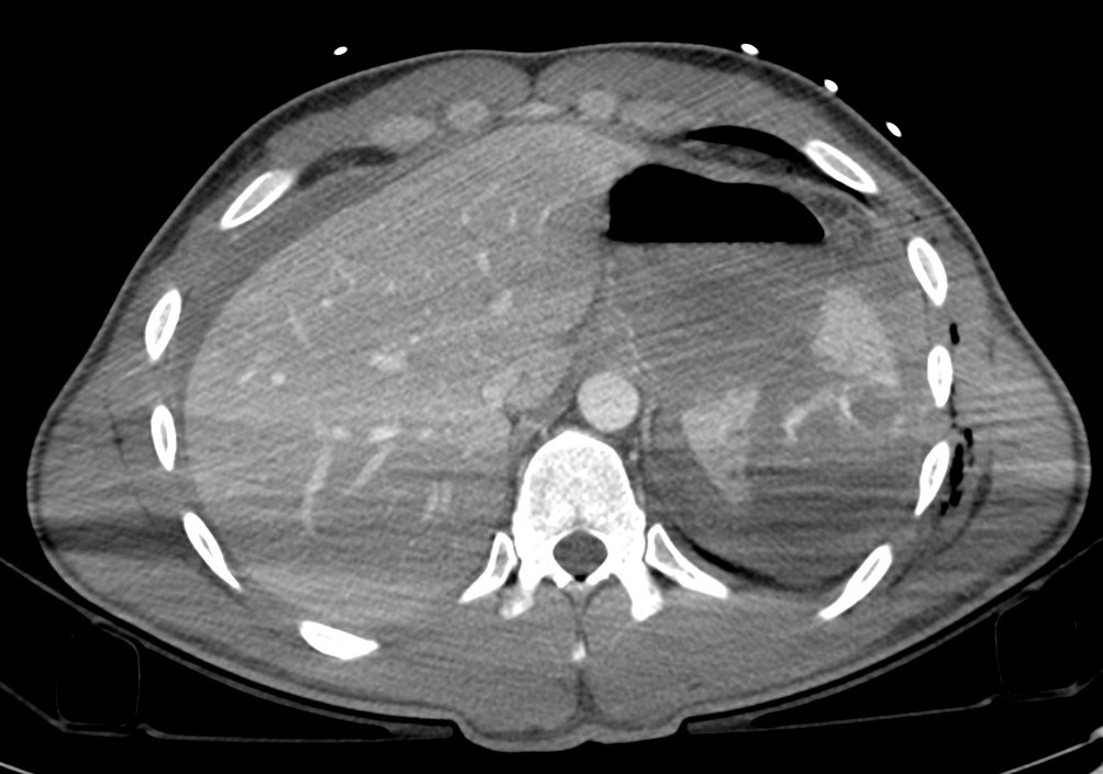 Debe hacerse en fase dual, la fase portal detecta mejor el sangrado activo y las lesiones parenquimatosas como contusiones o laceraciones, mientras que la fase arterial es útil para diagnosticar lesiones vasculares como un seudoaneurisma o fístulas.