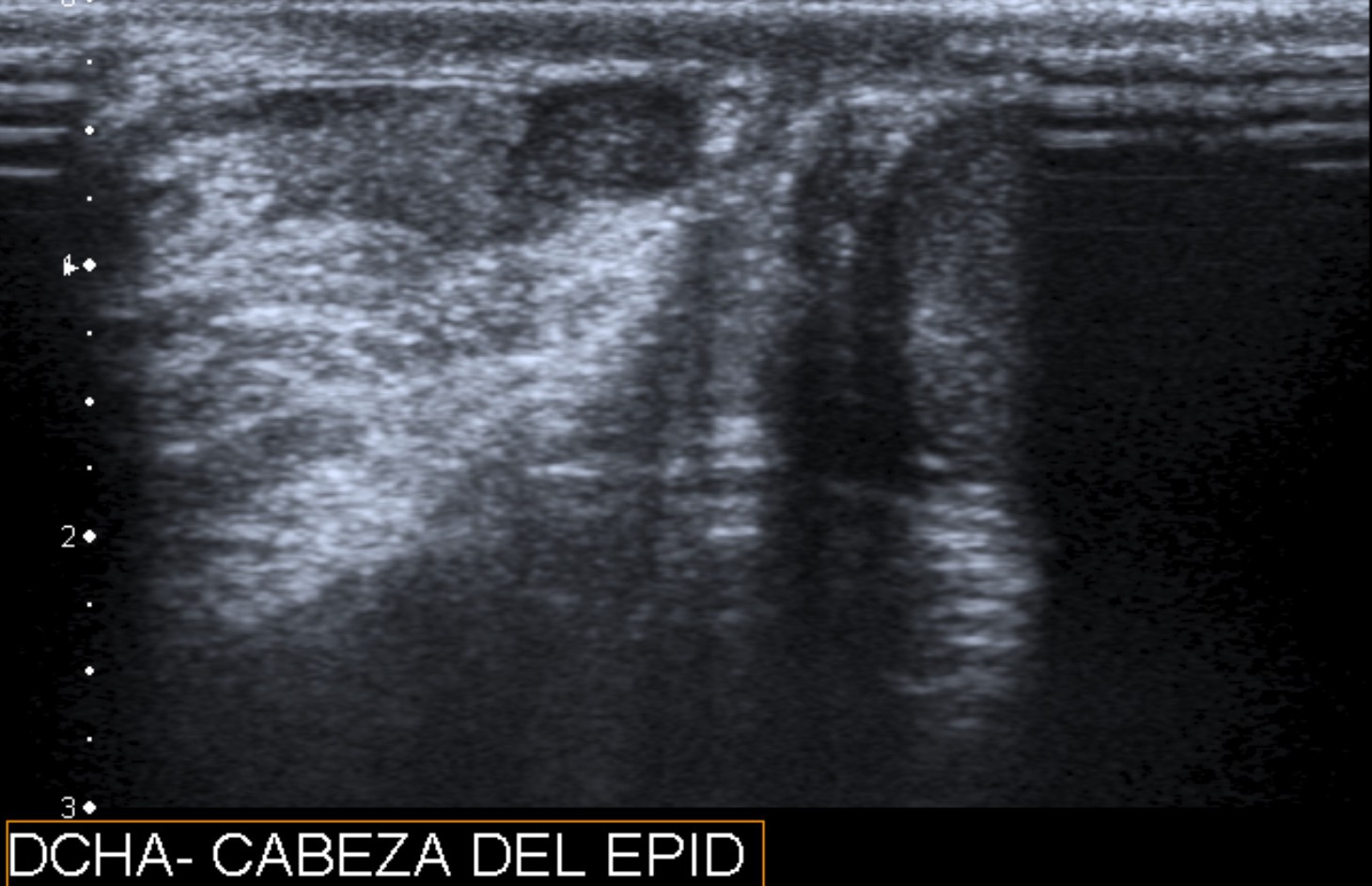 El epidídimo se presenta habitualmente hipoecoico o con una ecoestructura heterogénea debido al edema y a zonas de hemorragia.