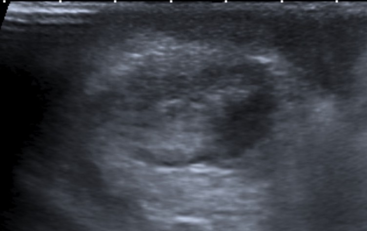 Mismo paciente. Se observa un hematoma hiperecogénico.