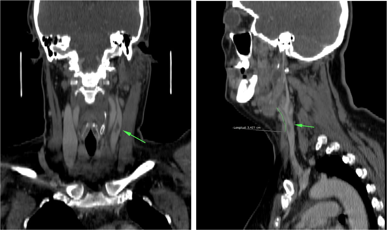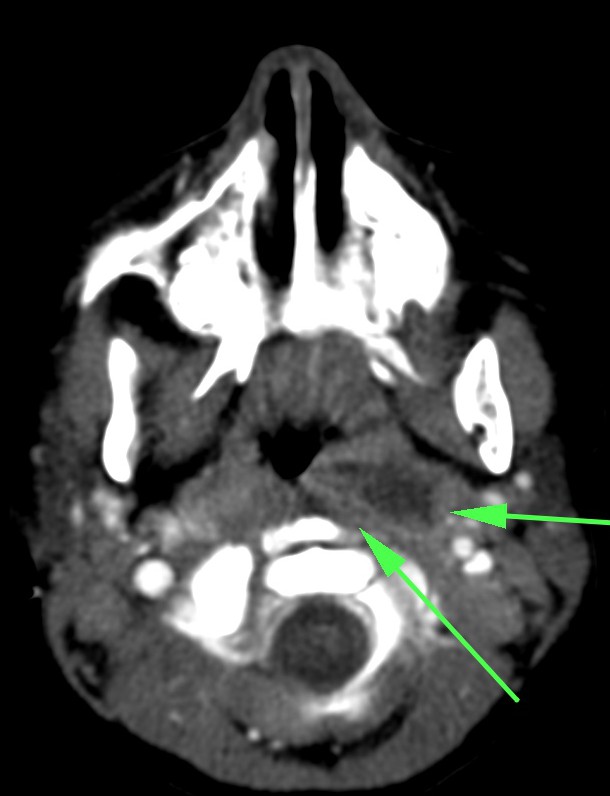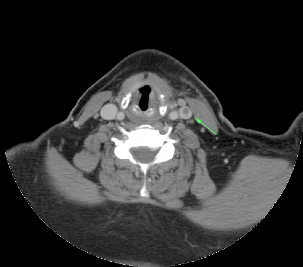 - Si hay afectación de la vena yugular interna, existe alto riesgo de migración de émbolos sépticos a los pulmones. Por tanto, dada la gravedad, es fundamental realizar además una TC de tórax y es el radiólogo el que debe sugerir o establecer el diagnóstico de la enfermedad en un primer momento.