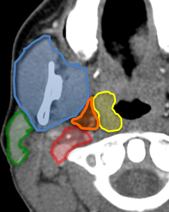 Como el nombre indica, contiene la glándula parótida, la cual puede afectarse por procesos bacterianos (tras la obstrucción de secrecciones) o virales